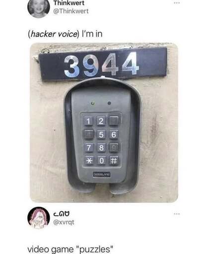 An insanely complex puzzle that the players are realistically not going to be able to solve, so the DM is just going to let them try shit for a half hour until he finally says, “yeah that works.”