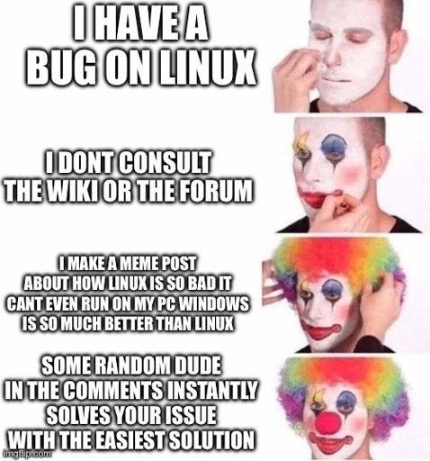 arrow-up1862arrow-down1imageThis happened to me at least 3 times.lemmy.mlLuffy@lemmy.ml to linuxmemes@lemmy.world · 8 months agomessage-square148linkfedilinkfile-text