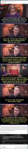 comma@midwest.social to Privacy@lemmy.mlEnglish · 8 months agosnowden on "nothing to hide, nothing to fear"lemmy.mlimagemessage-square90linkfedilinkarrow-up11.37Karrow-down122