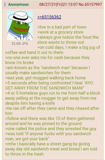 arrow-up11.08Karrow-down1imageAnon is the Sandwich Mansh.itjust.works🍹Early to RISA 🧉@sh.itjust.worksM to Greentext@sh.itjust.works · 7 months agomessage-square46linkfedilink