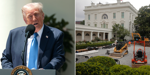 Donald Trump's Rose Garden renovation plans are well underway after bulldozers were pictured ripping up the grass at the White House, sparking outcry on social media.As per Trump's instruction, the grass will be paved over, and flagpoles are set to be installed on the north and south lawns in what i...