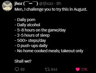Yeah but you’ll also be eating sausage for every meal of every day for that entire month.
