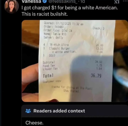 arrow-up11.07Karrow-down1imageRacism restaurant media.piefed.worldno banana@piefed.world to Lemmy Shitpost@lemmy.worldEnglish · 4 months agomessage-square130linkfedilink
