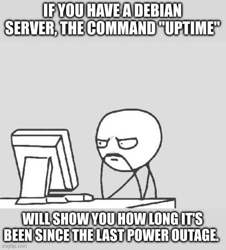 Or if you have a UPS and backup generator or a house battery (do these need a UPS as well still?) it will tell you how long since you setup the system.