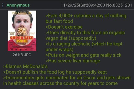 🍹Early to RISA 🧉@sh.itjust.worksM to Greentext@sh.itjust.works · 2 months agoAnon watches Super Size Mesh.itjust.worksimagemessage-square76linkfedilinkarrow-up1494arrow-down121