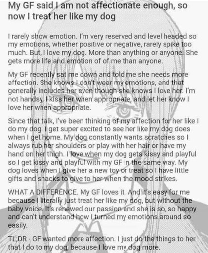 I wouldn’t be happy in that relationship because i need emotional mutuality/reflection, which is clearly muted here. But the two partners here are obviously fine with it.