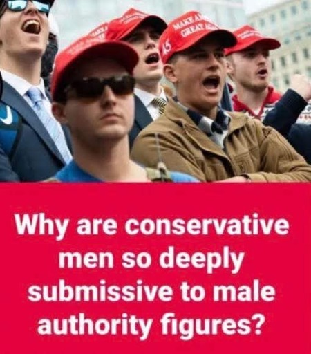 They rally around figures who look strong because they’re afraid of losing social status, or feeling xenophobia due to racism, or insecure over economic concerns. As always, everything is projection with these dipshits. They let fear drive them into the sort of groupthink mob they accuse liberals of being.