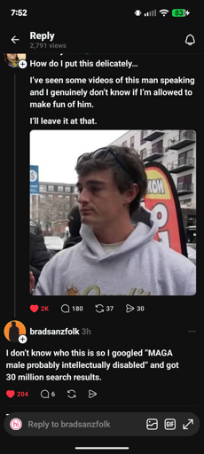 I’ve heard from some journalists I follow that them criticizing this chump feels like punching down; I felt validated by that because I felt exactly the same way lmao.