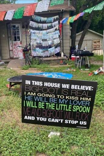 Yeah, you’re taking pictures of Chuck Tingle’s yard, leave the man alone, he works hard for us. Where else are you gonna find well-crafted erotica about sexy lawyer dinosaurs and bigfoots who are both billionaires and bomb defusal technicians trained in the art of love?