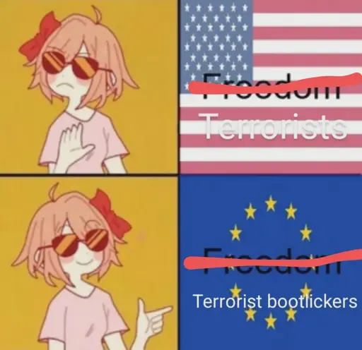 Smackyroon@lemmy.mlOPto Memes@lemmy.ml•Craycray what liberals will do with a simple change of flags1840·2 months ago“Russia invading Ukraine” is a western propaganda line, to be accurate it should be more along the lines of “Russia invades the nazi puppet government of the US empire to prevent further empire NATO imperialism and reestablish the Ukrainian peoples proper government”